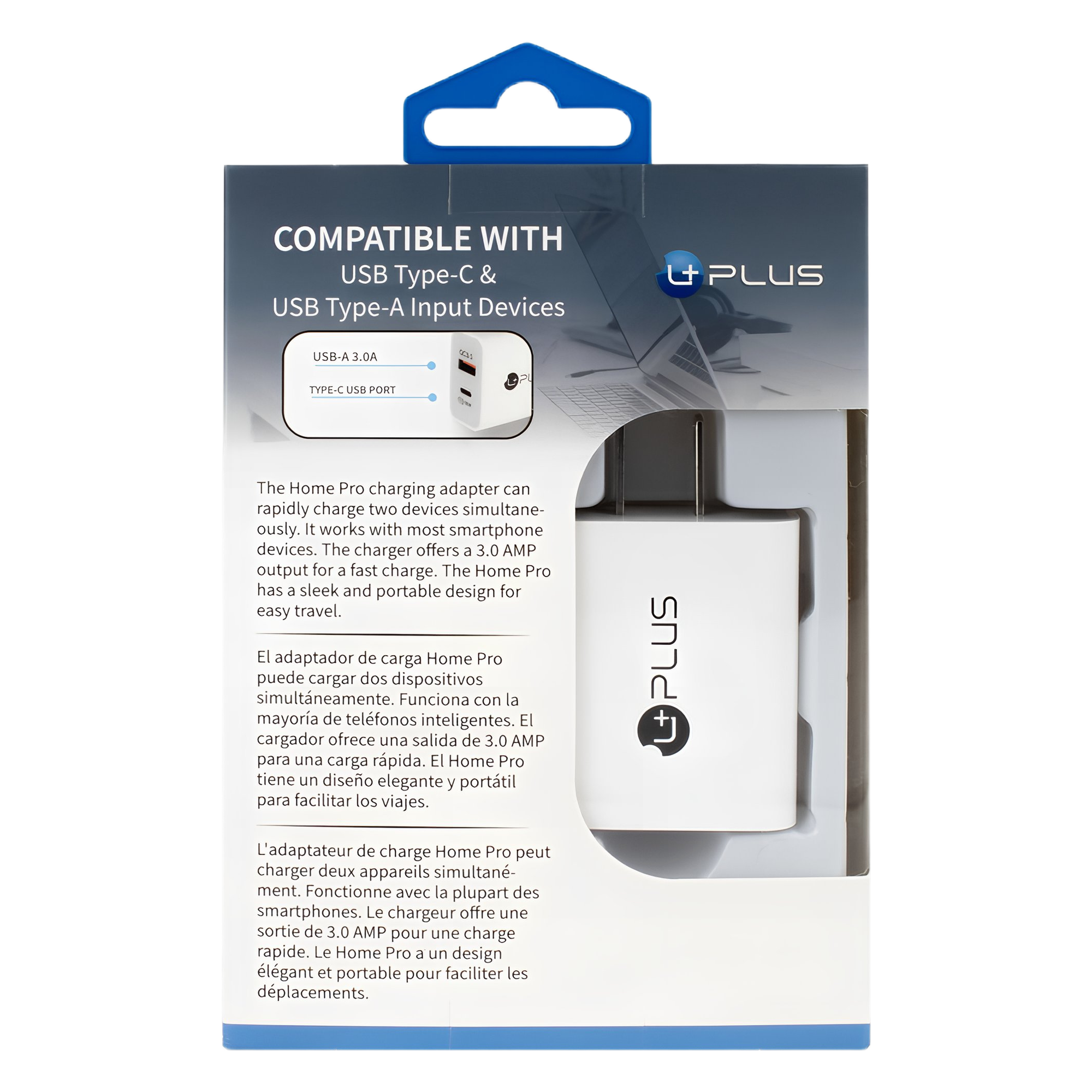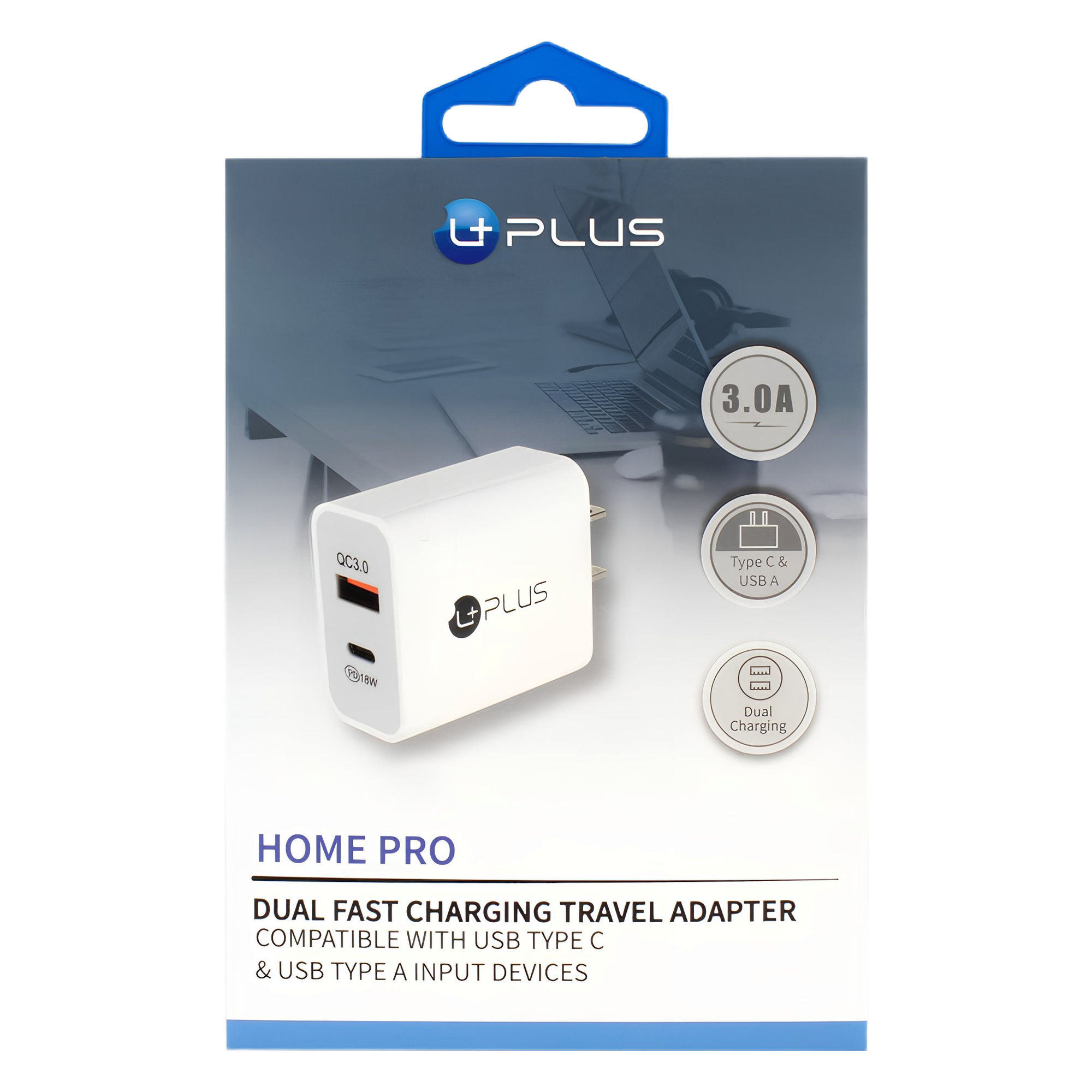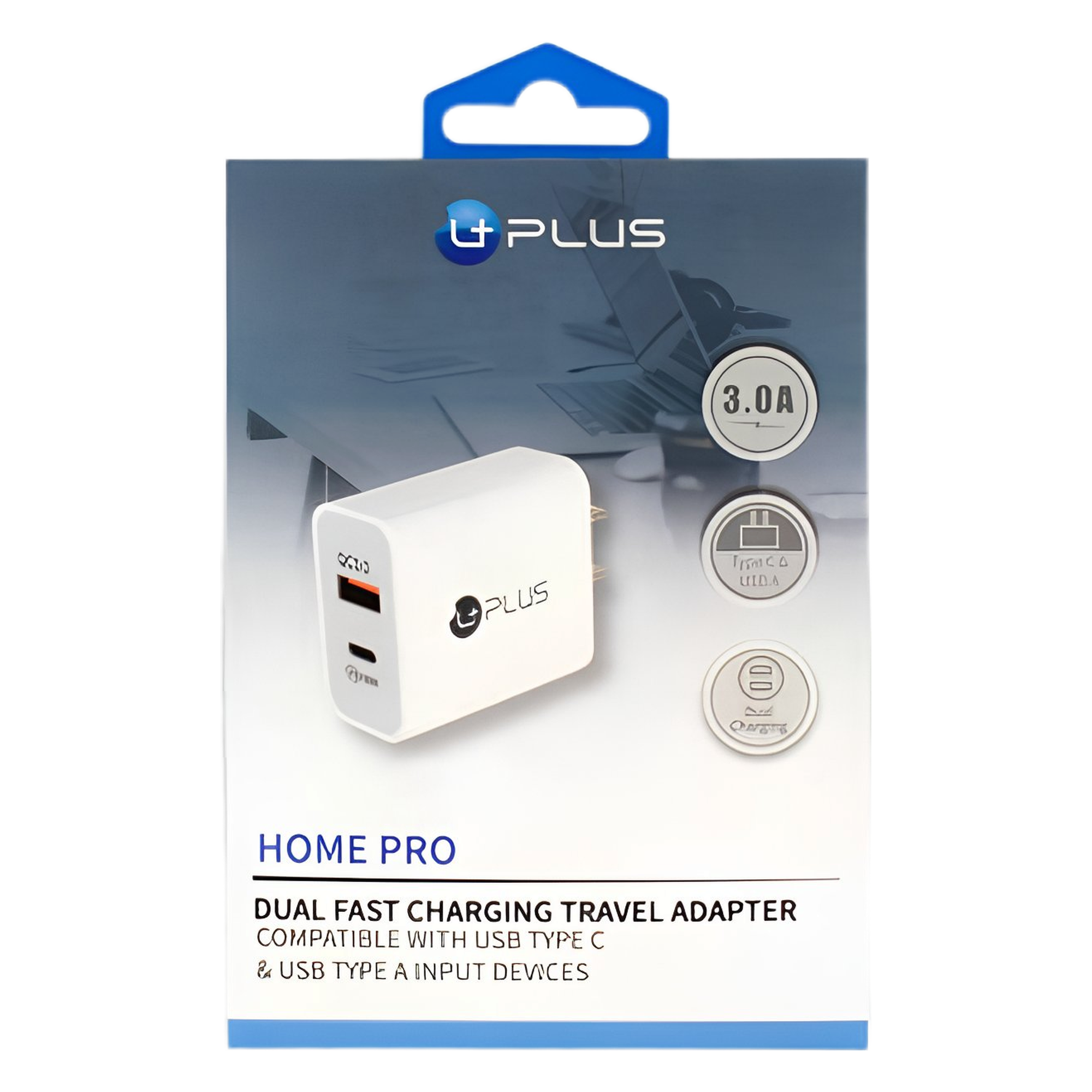 The U-Plus Dual Home Adapter Fast Charging Phone Charger (White with Adapter) is a compact, reliable dual-port wall charger from the U-Plus (or uPlus) wholesale lineup—perfect for charging two devices simultaneously at home, in the office, or on the go! It features one USB-A port and one USB-C port, delivering fast charging output (up to 3.0A total, with models supporting higher like 20W+ in similar variants), making it great for Samsung Galaxy, Google Pixel, LG, iPhones (with compatible cable), tablets, and more.